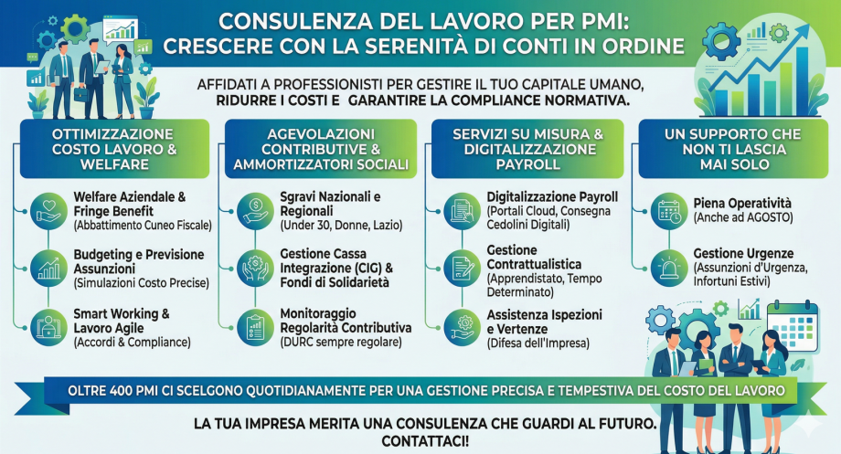 Vuoi far crescere la tua impresa con la sicurezza di una consulenza giuslavoristica impeccabile? Per una Piccola e Media Impresa, il capitale umano è la risorsa più preziosa, ma anche la voce di costo più incisiva in bilancio. Gestire questa complessità richiede un partner che vada oltre l'elaborazione buste paga, agendo come un vero consulente strategico per l'outsourcing del personale.